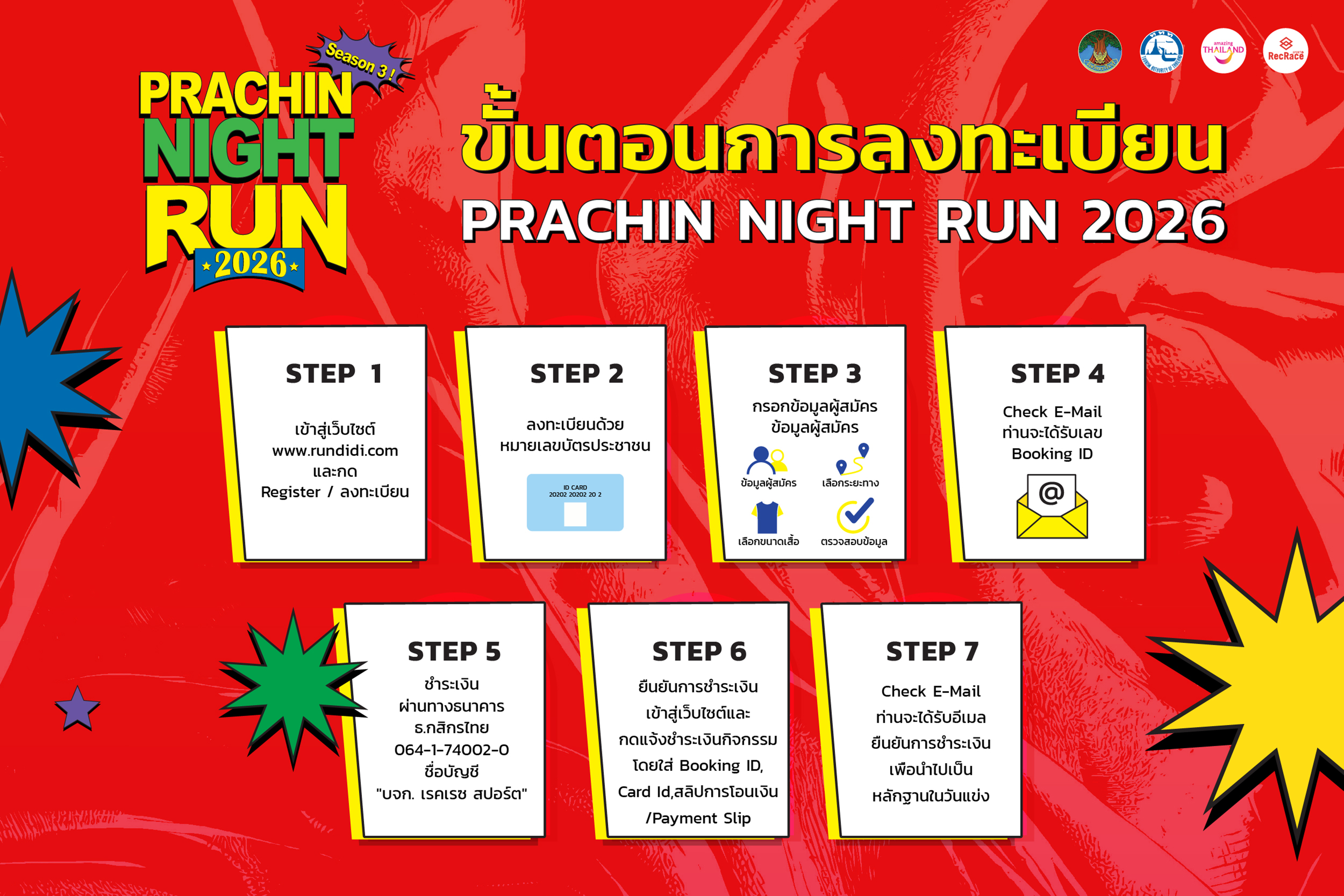 -ผู้ที่ลงทะเบียนทุกคนจะได้รับเสื้อแข่งขันและอาหาร