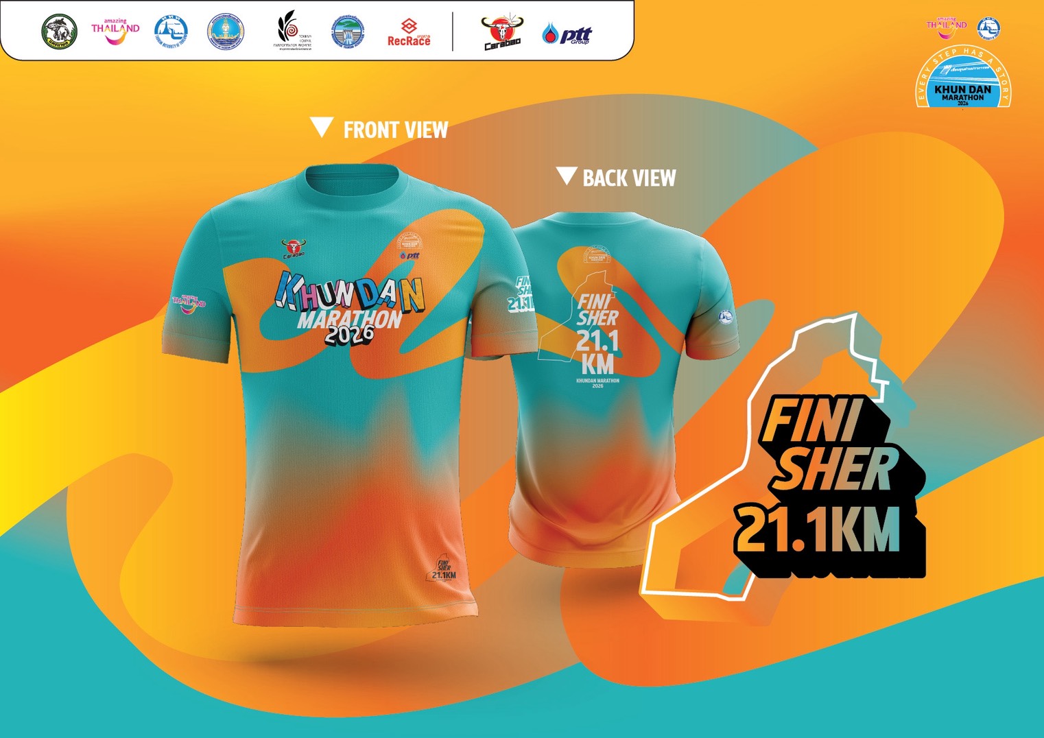 - เสื้อ Finisher เมื่อเข้าเส้นชัยสำหรับระยะ Half Marathon 21.1 km.