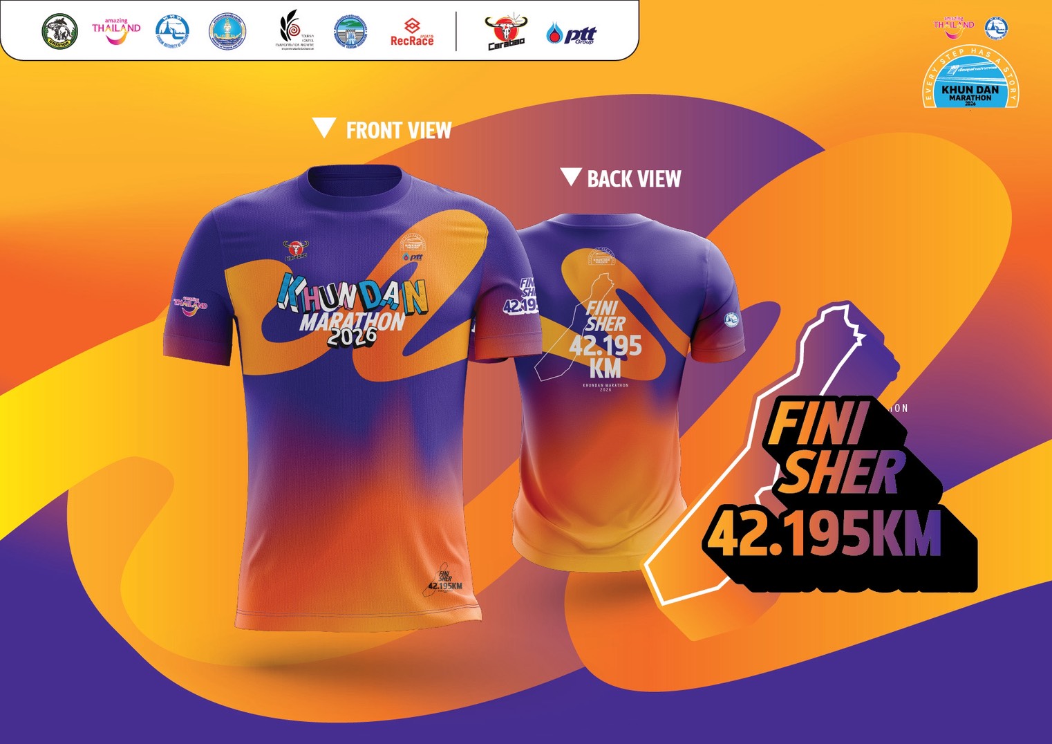 - เสื้อ Finisher เมื่อเข้าเส้นชัยสำหรับระยะ Marathon 42.195 km.