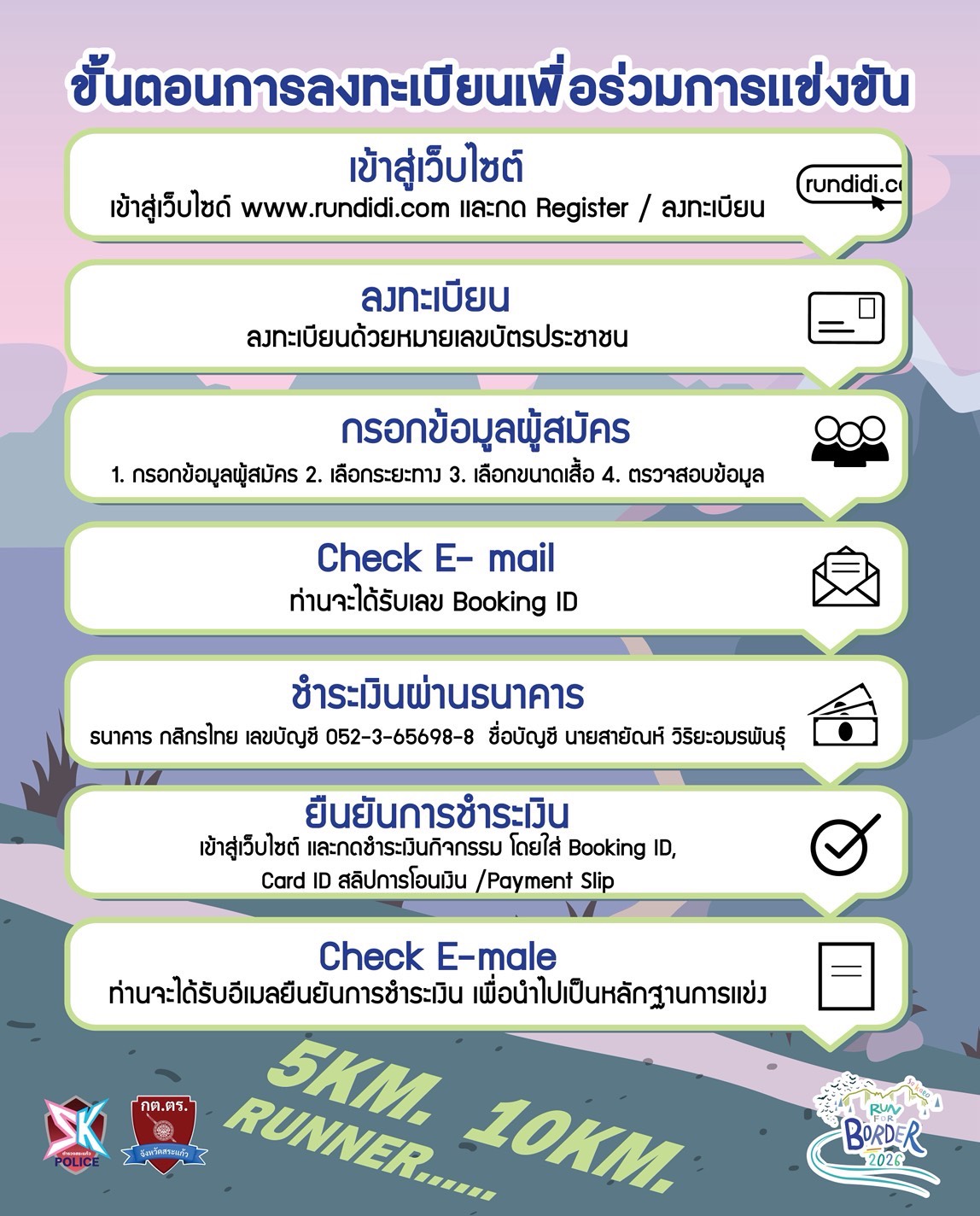 | 5KM | 500 BAHT |